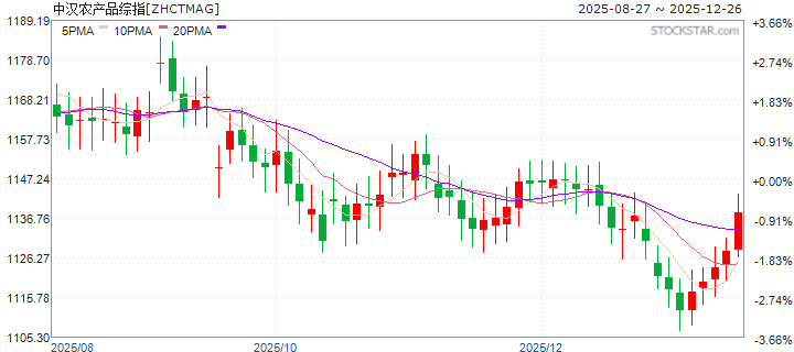 | 20251226 | 中汉农产品综指 | 价格收益 | 1092.702 | 0.882% | 2.011% | -0.783% | 0.227% | -0.799% | -2.993% |