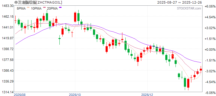 | 20251226 | 中汉油脂综指 | 价格收益 | 1333.837 | 0.488% | 2.099% | -2.555% | 4.279% | 3.076% | 1.954% |