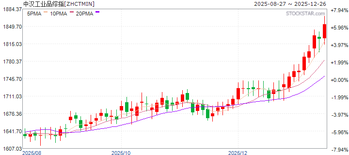 | 20251226 | 中汉工业品综指 | 价格收益 | 1803.100 | 1.338% | 4.601% | 7.720% | 12.252% | 16.955% | 10.487% |