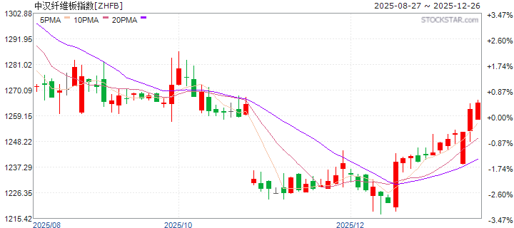 | 20251226 | 中汉纤维板指数 | 价格收益 | 1263.362 | 0.659% | 1.446% | 2.026% | -7.489% | -3.716% | -8.204% |