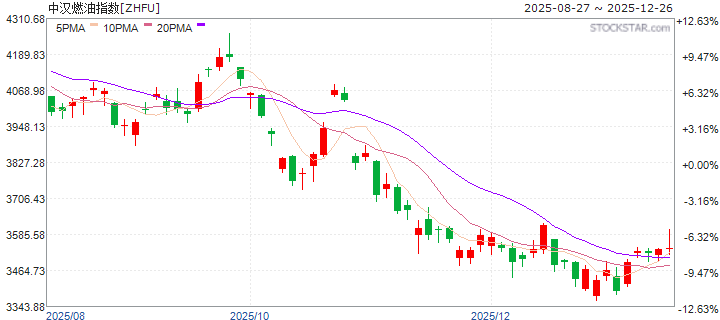 | 20251226 | 中汉燃油指数 | 价格收益 | 3557.294 | 1.213% | 3.773% | -0.033% | -14.879% | -12.709% | -18.434% |