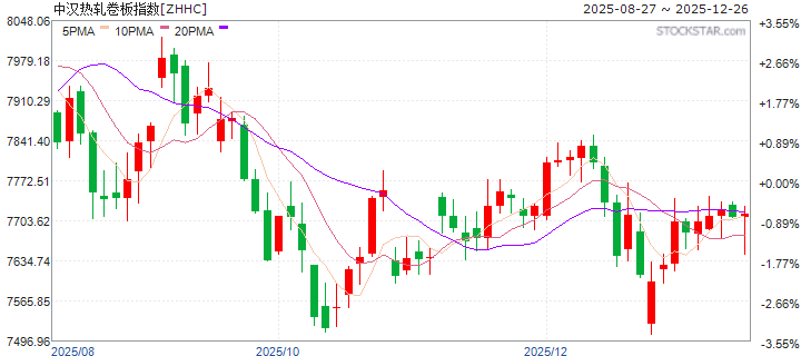 | 20251226 | 中汉热轧卷板指数 | 价格收益 | 7683.918 | -0.487% | 0.031% | -0.305% | -4.963% | 7.765% | -5.019% |