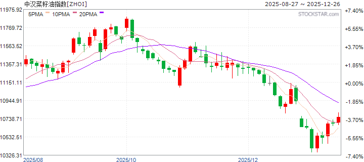 | 20251226 | 中汉菜籽油指数 | 价格收益 | 10738.880 | 0.445% | 2.323% | -5.054% | 2.359% | -0.686% | 4.540% |