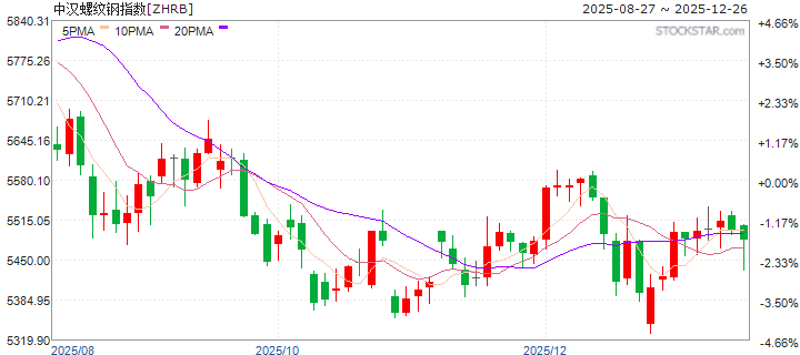 | 20251226 | 中汉螺纹钢指数 | 价格收益 | 5465.379 | -0.735% | -0.193% | 0.000% | -11.089% | 2.808% | -11.276% |