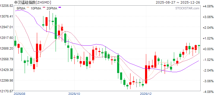 | 20251226 | 中汉锰硅指数 | 价格收益 | 12687.440 | -0.069% | 0.552% | 3.520% | -6.983% | 6.349% | -11.530% |