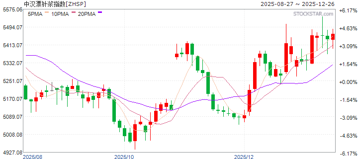 | 20251226 | 中汉漂针浆指数 | 价格收益 | 5442.628 | 0.214% | 2.112% | 7.359% | -9.281% | 1.105% | -9.028% |