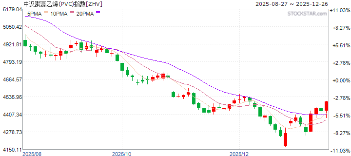 | 20251226 | 中汉聚氯乙烯(PVC)指数 | 价格收益 | 4434.553 | 0.443% | 1.927% | -1.663% | -19.950% | -8.198% | -18.784% |