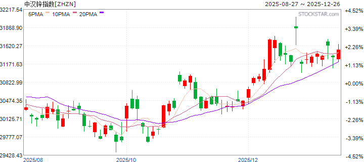 | 20251226 | 中汉锌指数 | 价格收益 | 31390.970 | 0.552% | 0.486% | 3.314% | -6.182% | 5.509% | 0.210% |