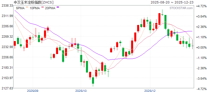 | 20251223 | 中汉玉米淀粉指数 | 价格收益 | 2238.983 | -0.080% | 0.040% | -2.481% | -3.212% | -5.475% | -6.801% |