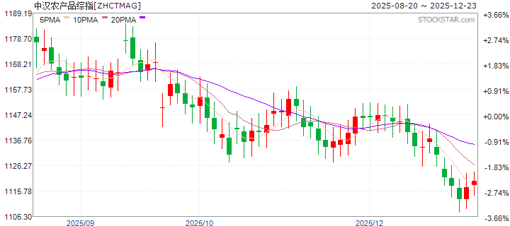 | 20251223 | 中汉农产品综指 | 价格收益 | 1077.227 | 0.341% | 0.567% | -2.189% | -1.193% | -2.204% | -4.367% |