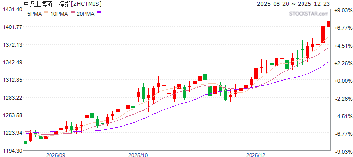 | 20251223 | 中汉上海商品综指 | 价格收益 | 1347.249 | 1.414% | 2.651% | 7.390% | 20.820% | 19.971% | 16.743% |