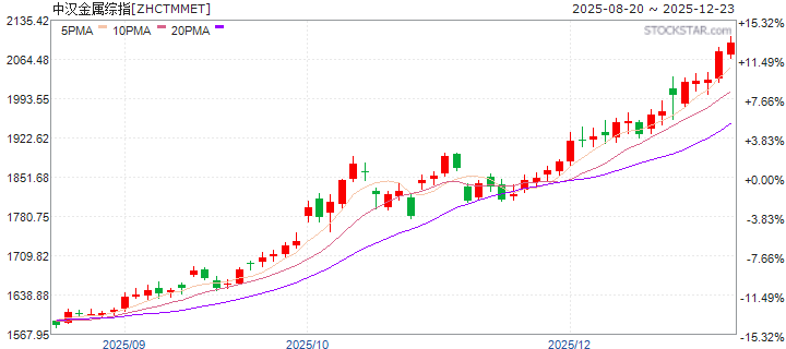 | 20251223 | 中汉金属综指 | 价格收益 | 1943.342 | 1.659% | 3.209% | 11.583% | 47.369% | 34.003% | 41.715% |