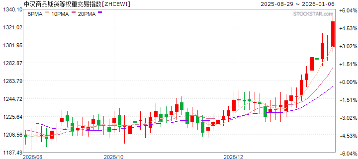 指数介绍: 中汉商品期货等权重指数是由专业指数公司筛选上期所,郑商所和大商所上市的活跃商品期货品种而编制的一个全市场指数。该指数在综合指数的基础上完整进行可投资性和流动性筛选,并适当实行商品权重的封顶和封底,成为一个可交易性的指数,可以直接用于开发商品期货投资产品。它是由商品大类,小类至单商品从上至下等权重的方式来确定每个商品在指数中的权重,该交易指数包括了所有商品板块,例如金属、能源、化工、基础原料等,它反映中国商品期货市场等权重时的整体走势。指数的起始日为2010年12月31日,初始值为1000点。 该指数精确显示在不使用杠杆情况下,中国商品期货全市场的等权重的收益率即贝塔(BETA)。投资者无须借助任何主动性操作,只要选择中汉全市场等权重商品期货指数投资,就应预期获得该指数的收益率。它也是衡量主动型期货投资业绩的一个有效基准。