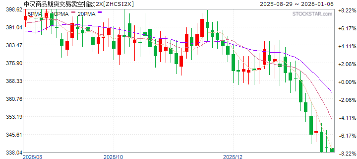 指数介绍: 中汉商品期货交易卖空指数2X是由专业指数公司筛选上期所,郑商所和大商所上市的活跃商品期货品种而编制的一个全市场指数。2X意思是2倍杠杆。该指数在综合指数的基础上完整进行可投资性和流动性筛选,并适当实行商品权重的封顶和封底,成为一个可交易性的指数,可以直接用于开发商品期货投资产品。它以持仓量,成交量和消费量来确定每个商品在指数中的权重,该交易指数包括了所有商品板块,例如金属、能源、化工、基础原料等。指数的起始日为2010年12月31日,初始值为1000点。 该指数精确显示在使用2倍杠杆情况下,卖空中国商品期货全市场的收益率即贝塔(BETA)。投资者无须借助任何主动性操作,只要选择中汉全市场2倍杠杆卖空商品期货指数投资,就应预期获得该指数的收益率。它也是衡量主动型期货投资业绩的一个有效基准。