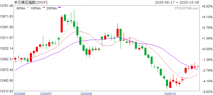 | 20251028 | 中汉棉花指数 | 价格收益 | 12725.290 | -0.074% | 0.111% | 2.416% | -2.197% | -2.737% | -2.305% |