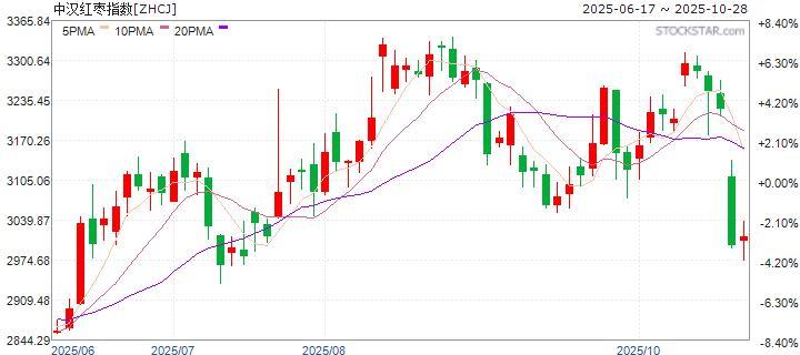 | 20251028 | 中汉红枣指数 | 价格收益 | 3005.604 | -1.699% | -4.973% | -3.475% | -2.821% | -1.215% | -3.031% |