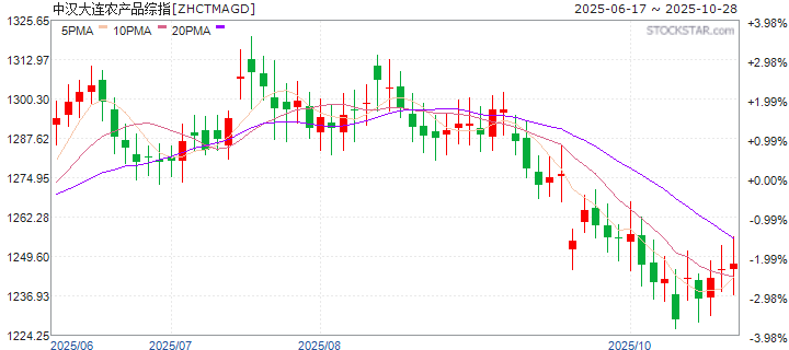 | 20251028 | 中汉大连农产品综指 | 价格收益 | 1167.869 | 0.144% | 0.347% | -0.643% | 0.727% | -2.216% | 0.138% |