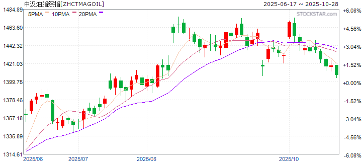 | 20251028 | 中汉油脂综指 | 价格收益 | 1385.436 | -0.557% | -0.351% | -1.124% | 8.313% | 4.447% | 7.679% |