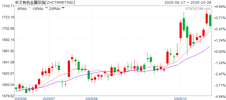 | 20251028 | 中汉有色金属综指 | 价格收益 | 1580.782 | -0.280% | 0.458% | 3.292% | 8.383% | 4.668% | 8.805% |