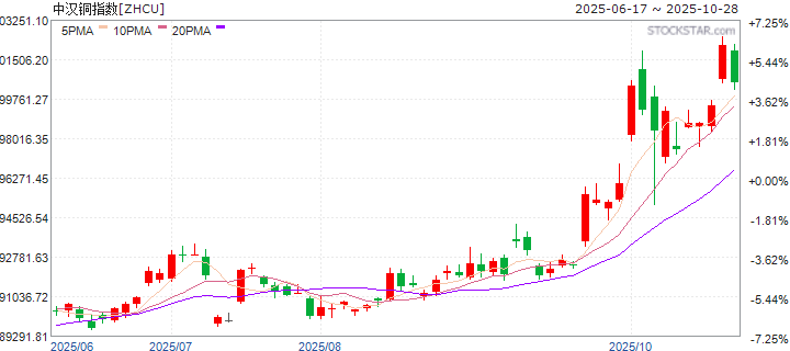 | 20251028 | 中汉铜指数 | 价格收益 | 101351.600 | -0.316% | 0.937% | 5.326% | 19.478% | 10.688% | 20.292% |