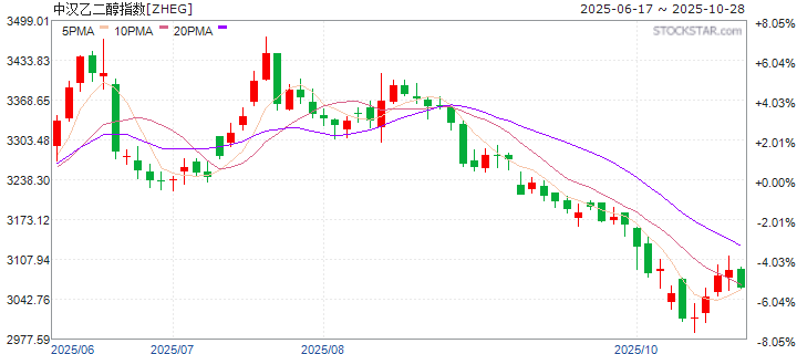 | 20251028 | 中汉乙二醇指数 | 价格收益 | 3077.211 | -0.195% | 0.000% | -2.619% | -17.235% | -10.818% | -17.508% |