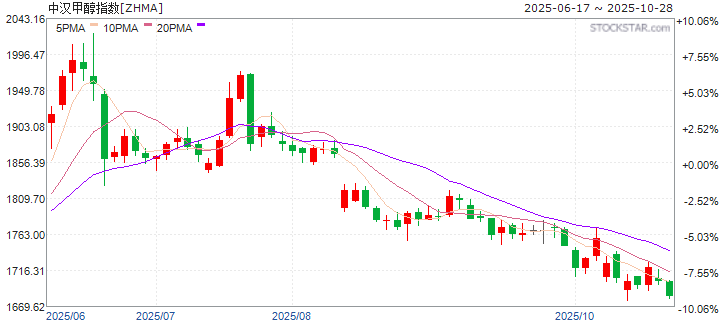 | 20251028 | 中汉甲醇指数 | 价格收益 | 1691.112 | -0.924% | -1.141% | -3.761% | -15.972% | -8.900% | -16.500% |