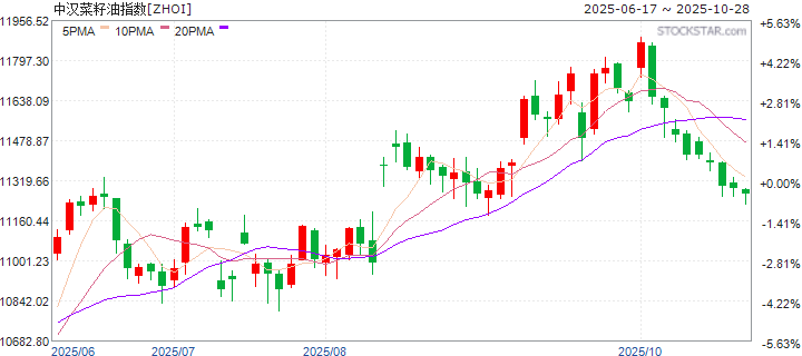 | 20251028 | 中汉菜籽油指数 | 价格收益 | 11258.360 | -0.349% | -0.051% | -3.245% | 7.311% | 3.899% | 6.589% |