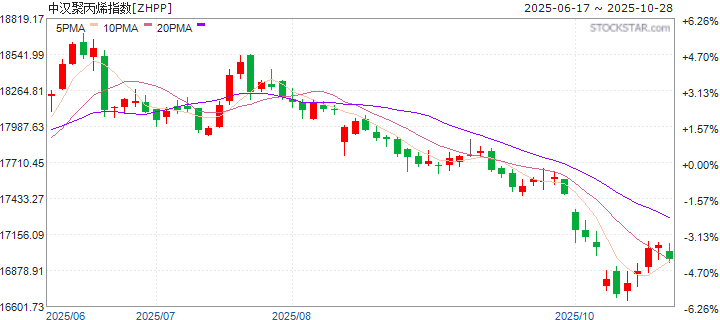 | 20251028 | 中汉聚丙烯指数 | 价格收益 | 17016.790 | -0.090% | -0.045% | -2.866% | -9.696% | -8.379% | -10.227% |