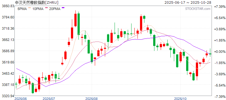 | 20251028 | 中汉天然橡胶指数 | 价格收益 | 3571.351 | 0.098% | 0.228% | 1.350% | -18.862% | -12.383% | -18.358% |