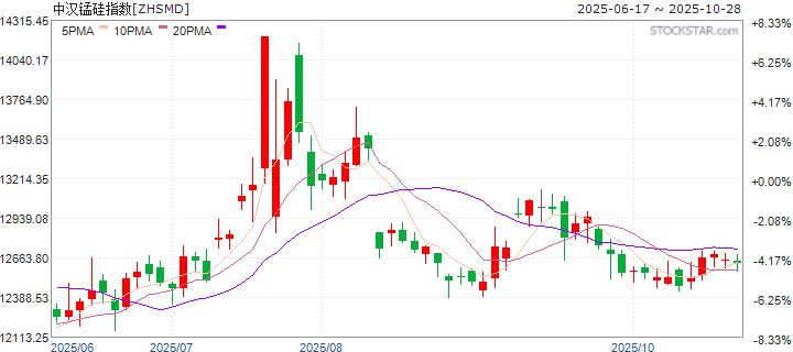 | 20251028 | 中汉锰硅指数 | 价格收益 | 12635.490 | -0.069% | 0.104% | 0.451% | -7.364% | -7.910% | -8.241% |