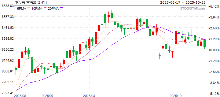 | 20251028 | 中汉豆油指数 | 价格收益 | 8295.698 | -0.267% | 0.220% | 1.109% | 6.882% | 3.918% | 5.541% |
